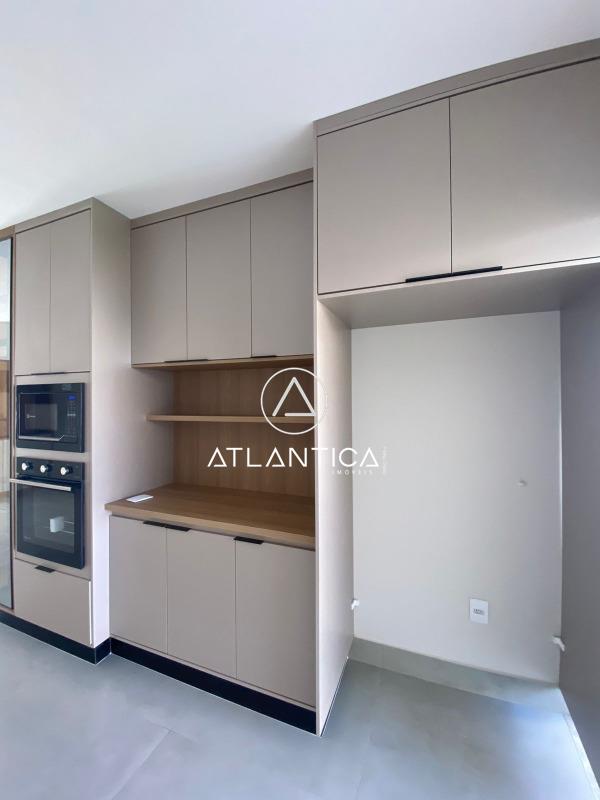 A sala conta com armários planejados e painel para TV, integrada à cozinha que já possui armários planejados, cooktop, forno elétrico, micro-ondas, lava-louças e exaustor.