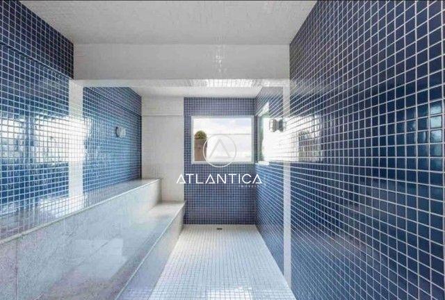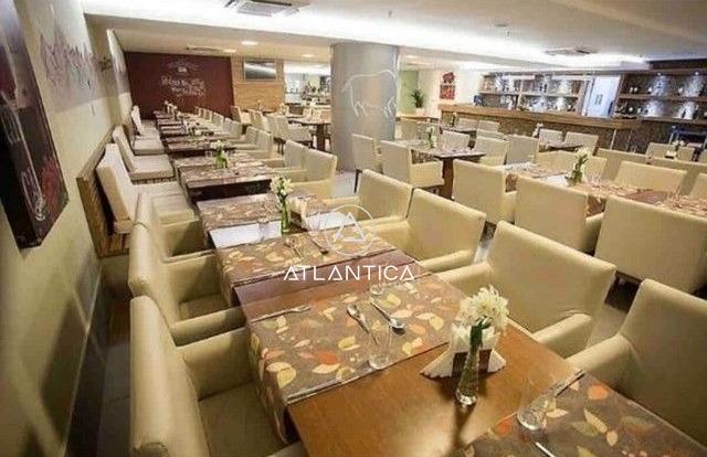 Condomínio com piscina, sauna, academia, portaria 24h, restaurante, salas de reunião.